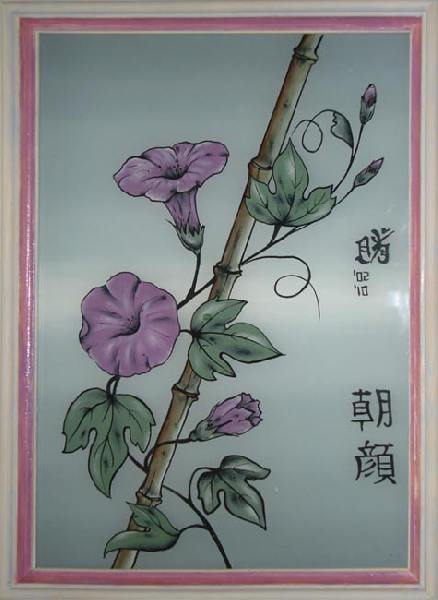 работа на 2х слоях, 30*20см, 2000р.японская живопись, картины, цветы, бамбук, вьюнок