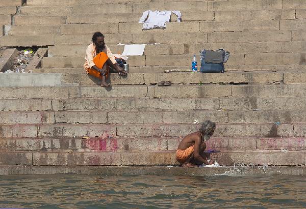 Жанровая сцена, Индия, Варанаси, Ганг, Гхат, люди