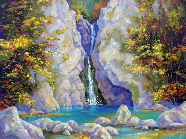 Пейзаж - природа, водопад, агура, Сочи, осень