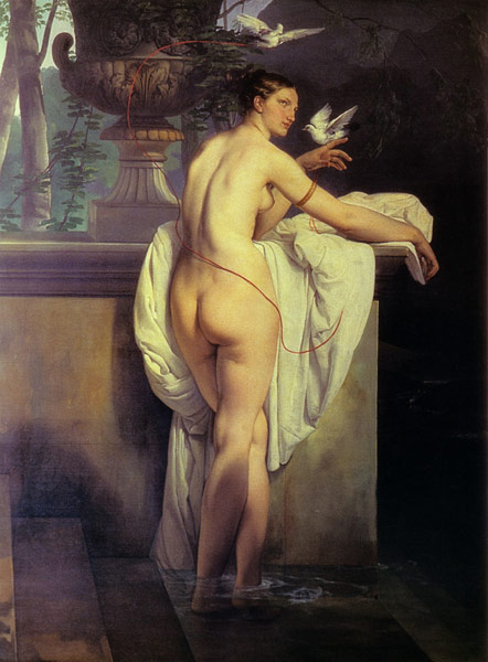Картины художника: Ню - обнажённая натура - Venus playing with two doves, 1830