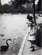 Дениза и Жак кормят лебедей под строгим присмотром Жанны